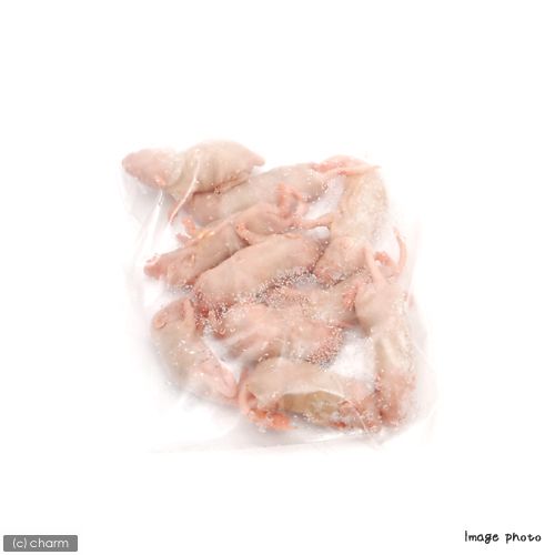 | 特長 | ●無菌室で育成されたピンクマウスです。 ●猛禽類(フクロウ、ワシ、タカなど)、爬虫類(ヘビやトカゲなど)、両生類(ベルツノガエルなどの大型のカエル)、大型肉食魚 (アロワナなど)、肉食性の哺乳類(小型猿、ミーアキャット、ハリネズミ、フェレットなど)、他に大型の蜘蛛やサソリを始めあらゆる肉食ペット用エサとしてご利用ください。 |