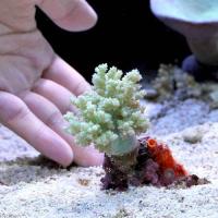 | 種類詳細 | グリーンの地に茶色いポリプを持つトサカの1種です。 ヤワタコアシカタトサカに似ていますが、本種は幹の部分がやや硬くなります。 比較的他の種類より丈夫で飼育しやすい種類ですが、白色の光が強いと褐色化しやすくなる為注意が必要です。 |