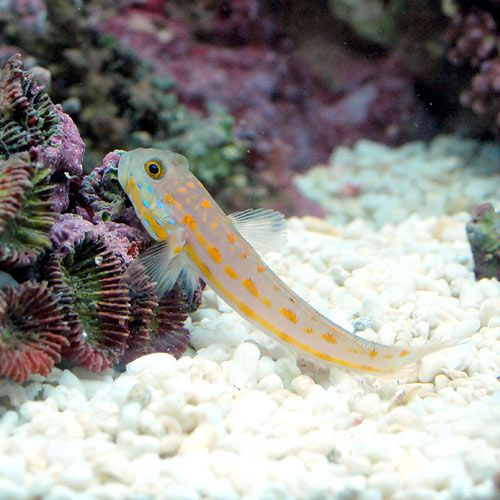 | 飼育のポイント | 飼育に関しては砂中のエサを捕食しますので出来るだけ細かい目のサンゴ砂を敷いてあげましょう。 またエサが不足すると痩せてきてしまいますのでフードタイマーなどを活用してこまめに餌を与えるようにしてください。 砂を攪拌することによってレイアウトを崩されてしまうことがあるのでライブロックなどの配置にも気をつけましょう。 また底生性の生体との混泳には不向きです。 |
