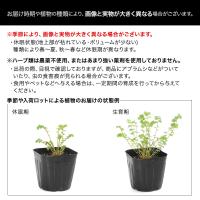 | 注意 | ※画像はイメージです。お届け時期により草丈や花の有無は異なります。画像中の撮影小物等は付属いたしません。 ※冬季お届けの苗はハウス内で管理しております。その為本来耐寒性があっても、急に屋外の霜の降りる場所などに植え付けると枯れる場合がございますのでご注意下さい。 ※入荷状況により、鉢(ポット)の形状及び色が異なる場合もございます。 ※ハーブ類は、食用になさるお客様もいらっしゃいますので、農薬不使用、またはあまり強い薬剤を使用しておりません。出荷の際、目視で確認しておりますが、商品にアブラムシなどがついていたり、虫の食害痕が見られる場合がございます。 |