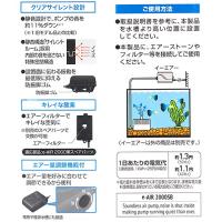| ご注意 | ※本品は、屋内観賞魚飼育専用です。他の目的や屋外では使用しないでください。 ※吐出量はエアーストーンの種類、エアーチューブの長さや接続方法、水深などにより異なります。 |
