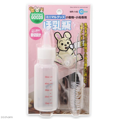 | 特長 | ●小動物・小鳥専用の哺乳瓶です。 ●幼い小動物や小鳥のミルク補給に最適な乳首になっています。 ●洗浄用のブラシが付属しているのでいつでも清潔を保つことができます。 |