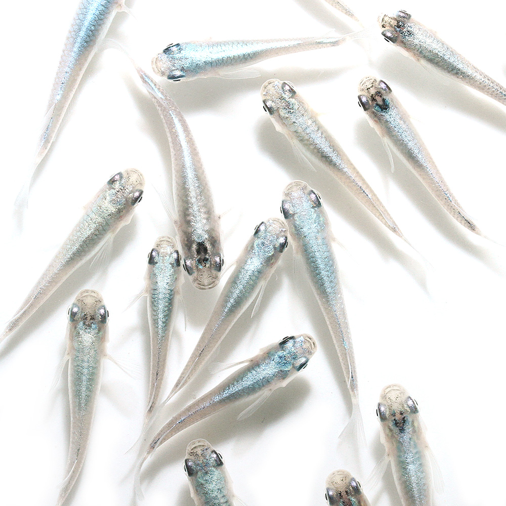 | 品種詳細 | 背の全体がシルバーやブルーに輝く、改良メダカトップクラスの人気を誇るメダカです。 現在の改良メダカブームの火付け役になったと言われており、今なお根強い人気の品種です。 背の光の入り具合によって「弱光」「中光」「強光」「フルボディ」「鉄仮面」と呼び名が変わり、頭の先まで光が乗る「鉄仮面」が最上級と呼ばれています。 幹之メダカ系統の様々な派生品種も続々と誕生しており、その勢いはとどまることを知りません。 ビオトープなどに入れて上から観察することより、格別の輝きを楽しめる美しい品種です。 |
