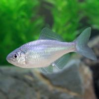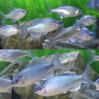 | 種類詳細 | カネヒラの改良品種です。 金属光沢が強く、婚姻色に青みを呈する個体を固定したタイプ、他にもイエローなど数タイプの色彩変異が知られています。 通常のカネヒラよりも観賞価値が高く魅力的な種です。 原種は9〜10月に産卵期を迎え、稚魚は翌春に二枚貝から浮出します。 他のタナゴ同様、雑食性ですが水草の新芽やアオミドロなどの植物質のエサを好みます。 |