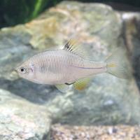 | 繁殖 | タナゴの仲間は2枚貝に産卵する特殊な産卵形態を持ちます。 産卵期を迎えたオスは美しい色彩を発揮し、メスは輸卵管がぶら下げて泳ぎます。 産卵に適した2枚貝を水槽に入れると、発情したオスがその貝の上でテリトリーを主張し、気に入った貝にメスを誘導し産卵行動を行います。 この際、オスは非常に気が荒いので他のオスが追い回されないように十分な隠れ家を用意すると良いでしょう。 卵は貝の中で孵化し、1ヶ月程で稚魚が浮上してくるので、水槽内に産卵用の2枚貝を投入後3週間ほどで別水槽に移動すると良いでしょう。 2枚貝を水槽に投入する際は砂に潜って回収できなくならないよう、浅いプラケースなどに細かい砂を薄く敷いてそのまま水槽内に沈めると良いでしょう。 産卵が終わった貝を移動する際は水質の変化に十分に気をつけ、2枚貝にダメージを与えないよう注意が必要です。 また、貝が閉じるときに卵が吐き出されないように慎重に取り扱ってください。 稚魚が浮上するまでの1ヶ月の間、長期飼育が難しい2枚貝をうまく維持できるかがポイントです。 2枚貝から浮出した稚魚はすぐにブラインシュリンプを食べることができます。 稚魚用の人工飼料も食べ、10日程でイトメも食べられるようになります。 |