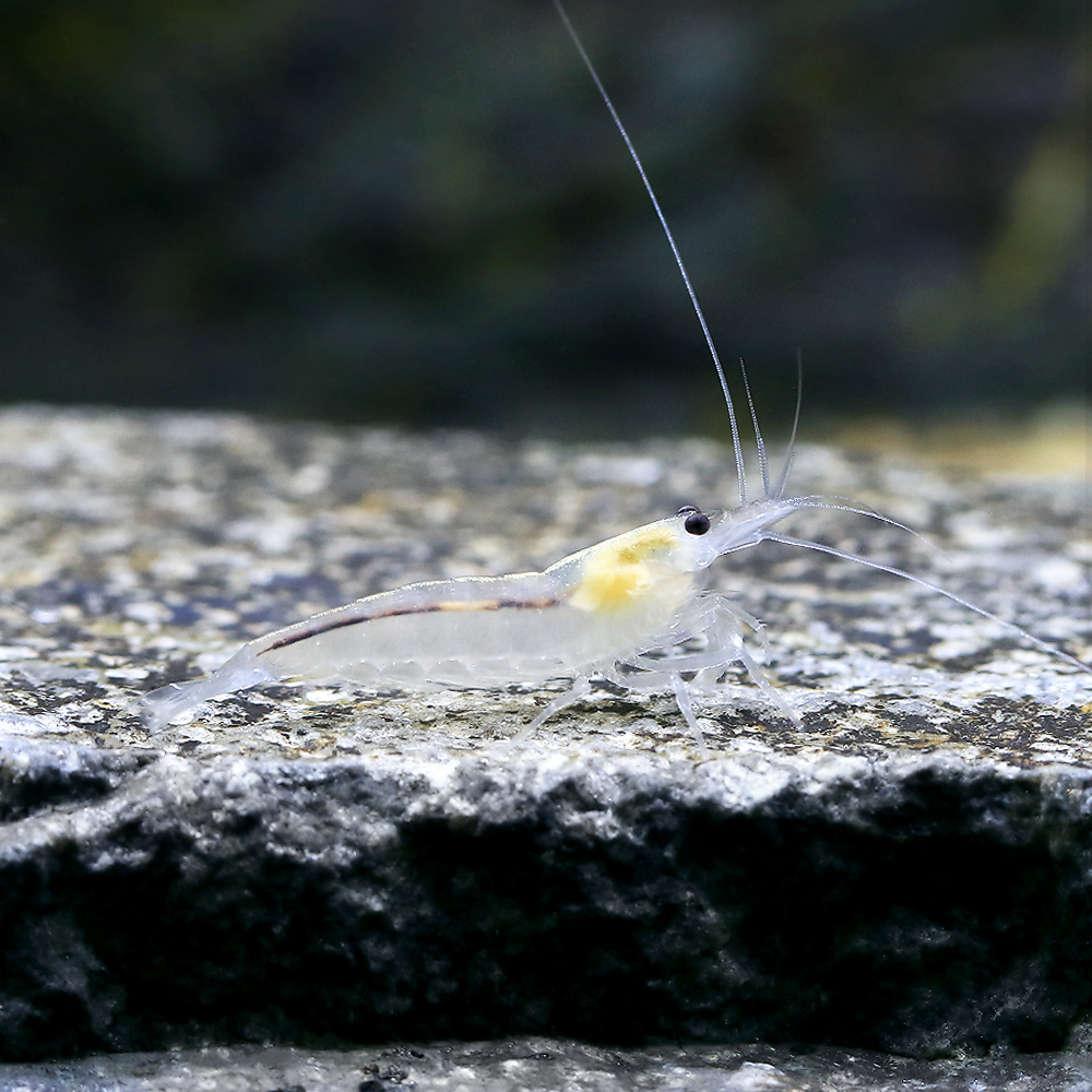 | 種類詳細 | 台湾産のヤマトヌマエビです。分類上は国産のヤマトヌマエビと同種ですが、台湾産の個体群はサイズが比較的小さく、小型水槽にもおすすめです。 このヤマトヌマエビ スノーホワイトは、今まで繁殖が困難な点から改良品種の流通が行われることが無かったヤマトヌマエビですが、 数年前から台湾より作出され流通が始まった、今までになかった改良品種のエビとなります。 改良品種の特徴として、原種と比べて白っぽい体色を持ち、体側の黒いスポットと尾扇の青いスポットが無くなっていることから、原種とは全く異なる美しさがあります。 ヤマトヌマエビは湿り気があるところなら陸を歩いて移動することが出来、エビ特有の後ろに向かって泳ぐ動作はせず、歩くことを得意とします。 原種同様、水槽内では藻類や魚の食べ残しを食べ、コケ取り生体としても十分に利用できます。数匹水槽に入れておくとコケの予防に確実に効果が見られます。 |
