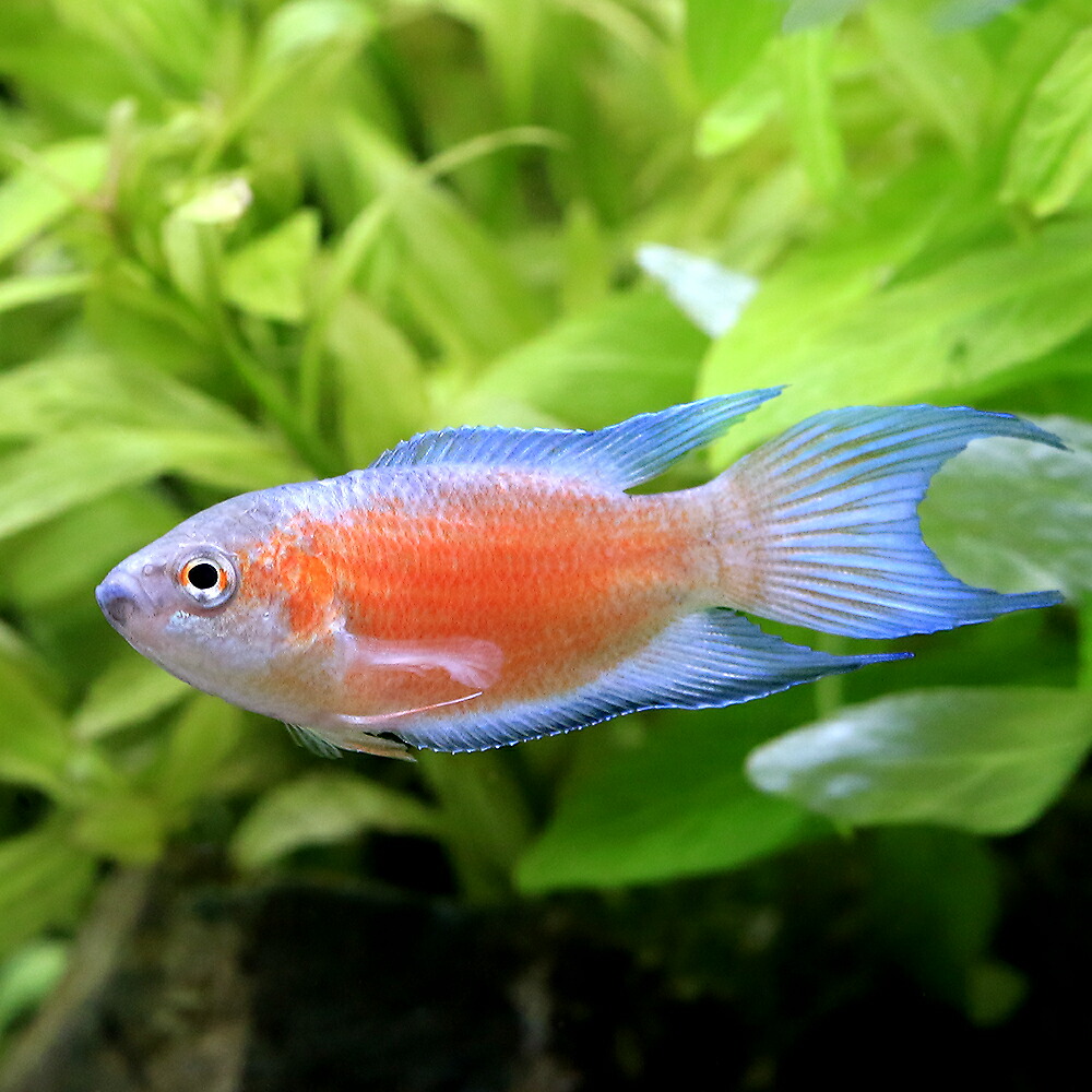 | 種類詳細 | パラダイスフィッシュ(タイワンキンギョ)の改良品種です。 鮮やかなオレンジ色の体に、ブルーのヒレが美しい品種です。 オスメス共に美しい体色を持ちますが、オスは成熟するとヒレがより大きくなり見ごたえある姿になります。飼育は容易で、低水温にも強いため暖かい室内などであれば冬季も無加温での飼育が可能です。 |