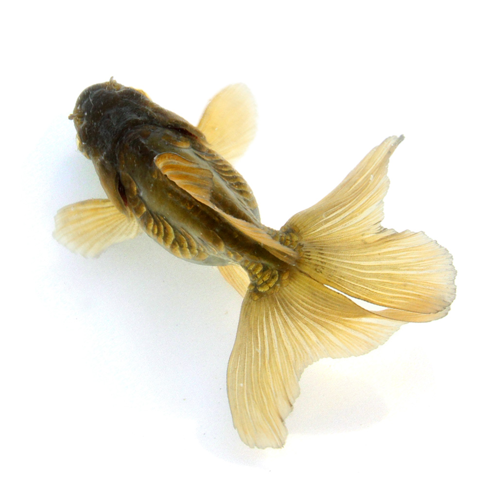 | 品種詳細 | 金魚の代表品種として親しまれている琉金は、江戸時代に中国から琉球を経て渡来しました。そのため琉金と命名されたと言われています。和金の変異種で体高があり、小さい頭と尖った口が特徴です。尾ビレは変化に富み観賞価値を高めています。飼育は容易ですが、エサの与えすぎによる転覆病に注意します。 |