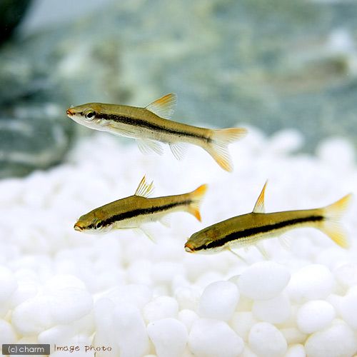 | 種類詳細 | 淀川水系以西の本州、四国、九州に生息する小型のコイの仲間です。 近年では野外へ流出した個体が多摩川などでも見られるようになり、本来の分布域ではないところでも見られるようになってしまいました。 体色は背側は褐色で、腹側は白色に染まり、各ヒレがオレンジに染まる美しい体色から人気の種です。 体側中央に1本の太い黒いのラインが入り、10cm以上の成熟した個体になるに伴い消失する傾向があります。 稚魚は流れの緩やかな河川、用水路等に生息し、数尾から十数尾からの群れをつくって生活しています。 繁殖期にはオヤニラミやドンコに托卵する性質が知られています。 飼育は容易で生餌、人工飼料等選り好みなく食べます。温和な性質なので混泳向きです。 |