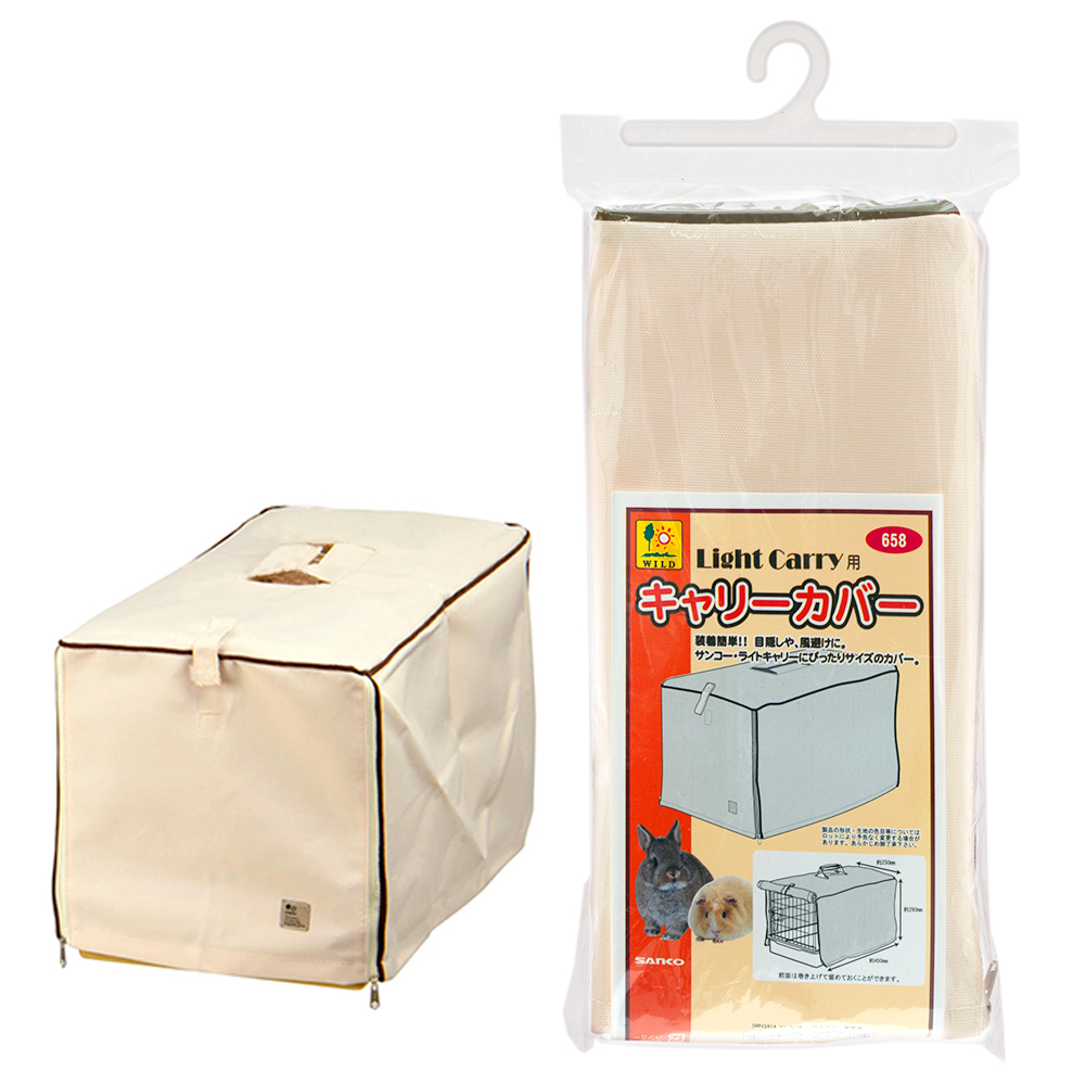 | 特長 | ●サンコーのライトキャリーにぴったりサイズのカバーです。 ●装着はとっても簡単で、動物の目隠しや風よけに最適です。 ●前面は巻き上げて留めておくことができます。 ●ライトキャリーには必需品!おでかけのときにも重宝します。 ●破損した際の交換用や、予備として持っておくのもおすすめです。 |