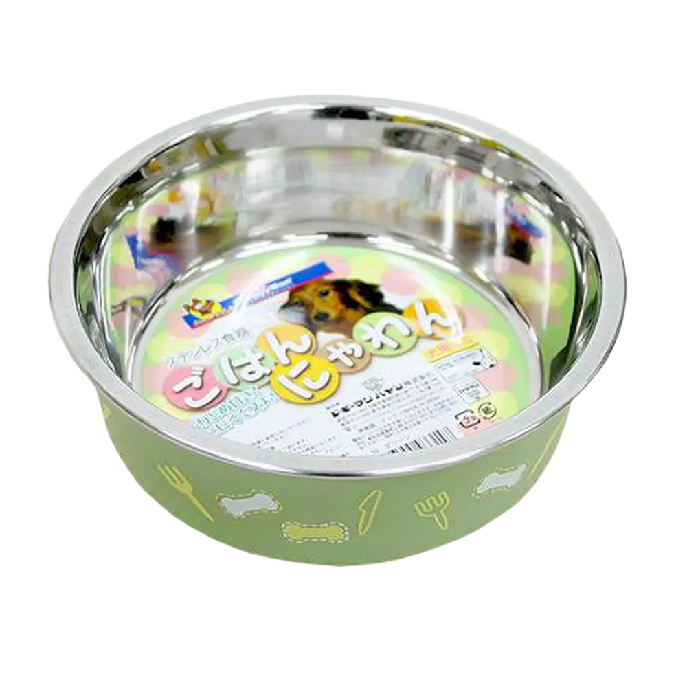 すべりどめ付き!サビにくく丈夫! 水に強く錆びにくいステンレスを使用した犬用の食器です。底部にはすべり止めが付いており、安定感は抜群!高さは浅すぎず深すぎず、犬にとって非常に食べやすい深さです。カラーはグリーン、キッチンアイテムのデザインが全体に施され可愛い仕上がりになっております。