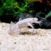 | どんな種類? | アフリカに生息するコモリガエル科(Pipidae)の仲間です。 水中生活に特化しているカエルで、大きな水かきを持つ後足と平らな体が特徴的です。 体の側面には水中の振動を感知する為の側線が発達しています。また、名前の通り後足の指には黒い爪が見られます。 丈夫で飼育しやすく、また繁殖も人工的に行なうことができるため、古くから実験動物として扱われてきました。 可愛らしい顔つきと、熱帯魚と同様の設備で飼育することができるため、人気の高い種類です。 |