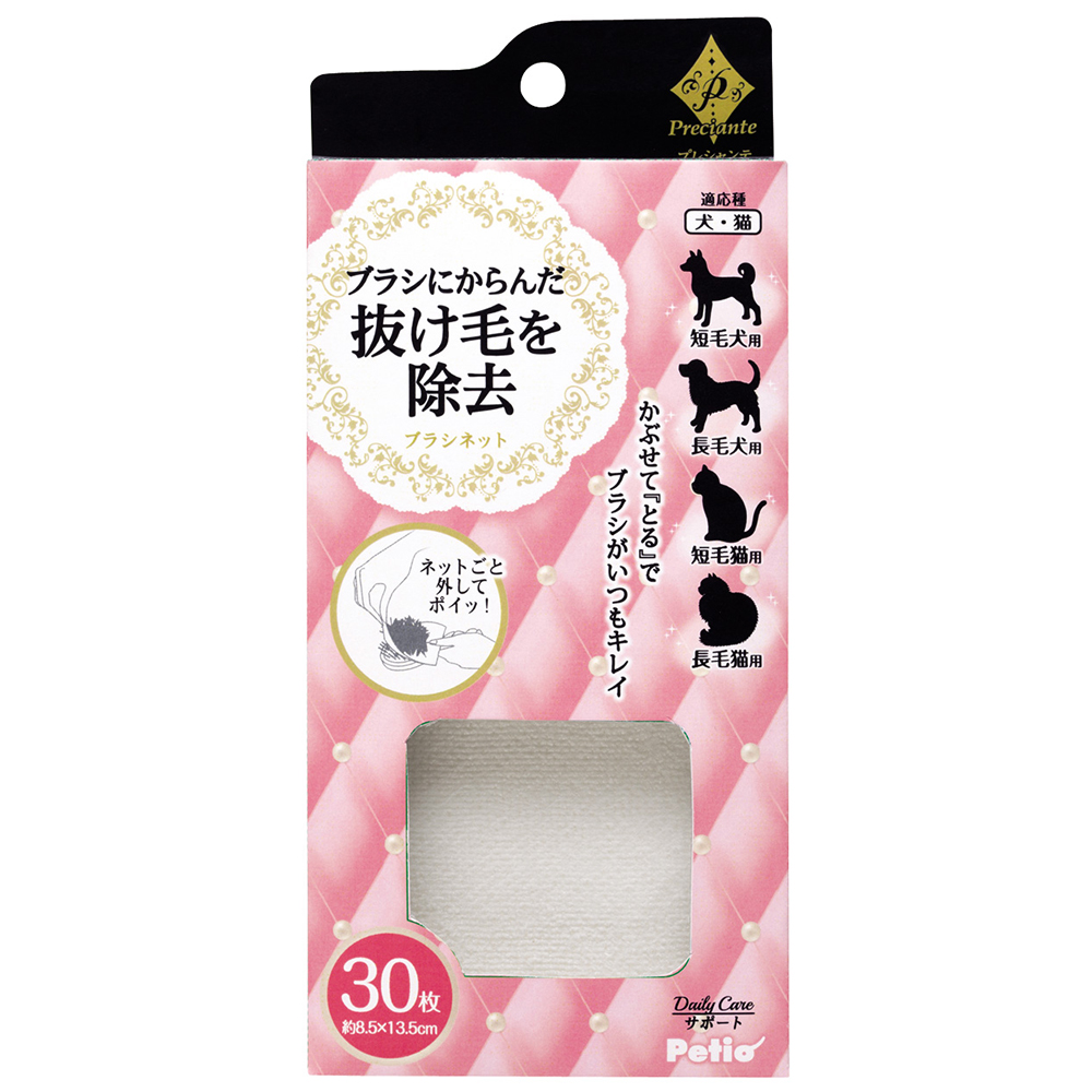 | キレイになるための 使い方 | ●ブラシ部に本品を被せます。無理に押し込むとブラシが破損する恐れがありますので、注意してください。 ●ペットの被毛をブラッシングした後、ブラシネットを抜け毛やホコリを包みながらはずし、そのまま燃えるゴミとして捨ててください。 |