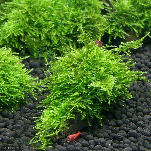 | どんな種類? | 育成難易度 → ★★★☆☆ 幾何学的な形状に葉を展開するウィローモスの仲間で、ウィローモスより若干明るめの色合いと整った印象から人気の高い種類です。ウィローモスより弱いですが、活着性も有り流木や石に活着させ、様々な方法で使用できる草です。 レイアウト水槽は言うまでも無く、極少量のCO2と標準的な2灯式のライトで十分に見ごたえのある姿に育てられることから、生体メインの水槽のポイントとして重宝される種類です。 育成面での要求はそれ程厳しくありませんが、最大の魅力である整った葉の形を楽しむのであればやや明るめの照明、少量のCO2と肥料分の添加を行った方が良いです。 水質にもうるさくなく、底床もソイル、砂利系どちらでも構いません。 元々水草育成をメインにセッティングした水槽ではそれ程難なく育てることができる種類ですが、グロッソスティグマやグリーンロタラ向けにセッティングした、高光量で肥料が多目の水槽ではエビを活用してコケの発生を防ぐようにしましょう。 活着性は弱めなので、石や流木に括り付けるにはテグスの使用がお勧めです。 新芽がコンスタントに伸び始めていることが確認できたら、一度葉をカットすると次から生えてきた葉がきれいに生え揃うのもウィローモスと同じです。 できあがった茂みは美しく、ついついカットをためらってしまいますが、あまり密集しすぎると光のあたらない部分ができてしまい、そこから枯れて剥がれてしまったり、またゴミや排泄物が溜まって水質の悪化の原因となります。 時々カットして下の葉にも十分に光が当たるようにしたり、水替えの際にホースで間に溜まっているゴミを吸い出すようにすると、予想外のトラブルを未然に防ぐことができます。 美しい幾何学的な茂みと若干のCO2の添加で維持できる、茂みが隠れ家となり、また微生物が発生しやすいポイントともなる、と言うことから、見た目と実用を兼ねてブリーディングに用いられること多い種類です。 コケ取りはエビ類となりますが、南米産ウィローモスメインの水槽であれば、光量を抑え気味に設定し、コケの発生を防ぐ方法もお勧めです。 様々なバリエーションがあるモスの仲間でも、南米産ウィローモス程、整った印象を持つものは他にありません。一般的な水草水槽の環境であれば、他の草の陰になる様な位置でも十分に美しく育ちますので、応用範囲も広いです。 また環境への要求がシビアでないことから、小型水槽への使用にも耐えうる種類です。葉を短く維持すれば前景に、長く伸ばせば後景にと、小型水槽の中一つを取ってみても、様々な用途に使用できます。 三角形の幾何学的な茂みを作る明るい緑のウィローモスです。 |