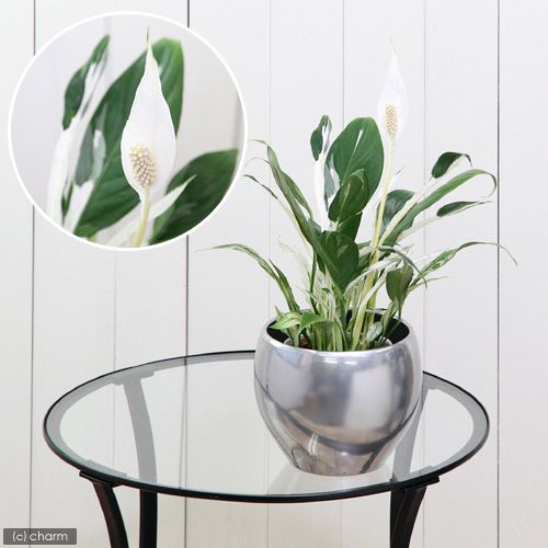 種類詳細 | ・本種「スパティフィラム 斑入り」の特長 アメリカ原産の深緑の葉と花のコントラストが美しい植物です。仏炎苞と呼ばれる特殊な花を咲かせます。 花期が長く葉も美しいスパティフィラムは室内向きの観葉植物として人気が高いです。 |