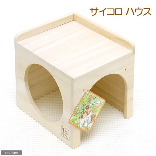 | 特長 | ●うさぎやモルモット等の小動物用ハウスです。 ●大きな出入り口で、快適にくぐって、隠れて休んだり遊んだりすることができます。 ●金具は使用せずに作られているため安全で、上部にはストッパーがついているので、餌皿を乗せるのに便利な仕様となっています。 ●自然素材を使用しています。 |