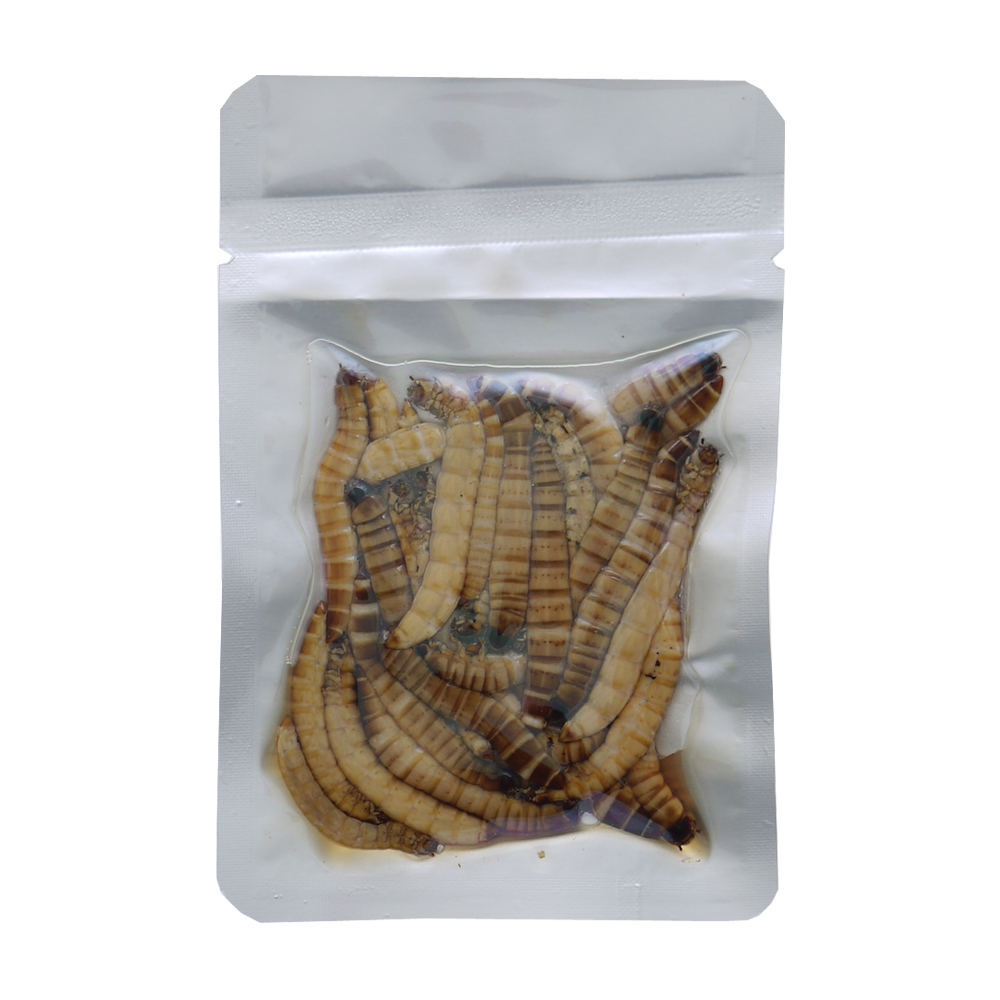 | 特長 | ●無農薬栽培された飼料で育てられたスーパーワームです。 ●病原菌など持ち込まないよう完備されたクリーンな環境で育てられています。 ●保存料不使用、オゾン水で殺菌済みの原料を生のまま真空パック、常温保存が可能です。 ●生のままなので栄養を損なわず消化吸収しやすい。 ●スーパーワームは高タンパクで体の成長と肥育を促進します。高脂肪なので与えすぎにご注意ください。 |