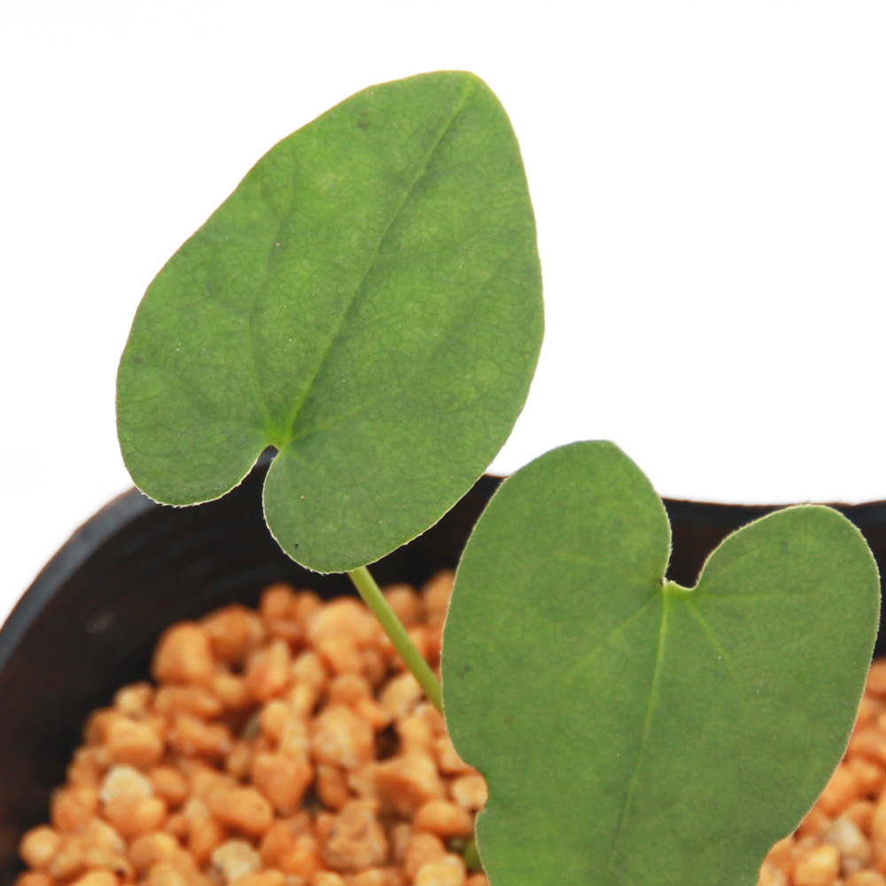 | 特徴 | オトメアオイの変種とされている、静岡県東部固有のヒメカンアオイ系の種です。 カンアオイは冬季でも葉を落とさないことや、葉の模様に個体差が多く見られることから、古典園芸として古くから知られています。 育成は春先の芽出しの頃はしっかり日に当てますが、後は通年半日陰で管理します。 水切れ、加湿の両方に弱く鹿沼土単用などにして水はけの良い用土を使用し高植えにしたほうが良いでしょう。 耐寒性の強い種ですが、冬季は凍結に注意が必要です。 花は株の根元につく場合が多いため観賞しやすくするためには、鉢の高さや植え付け高さに工夫が必要です。