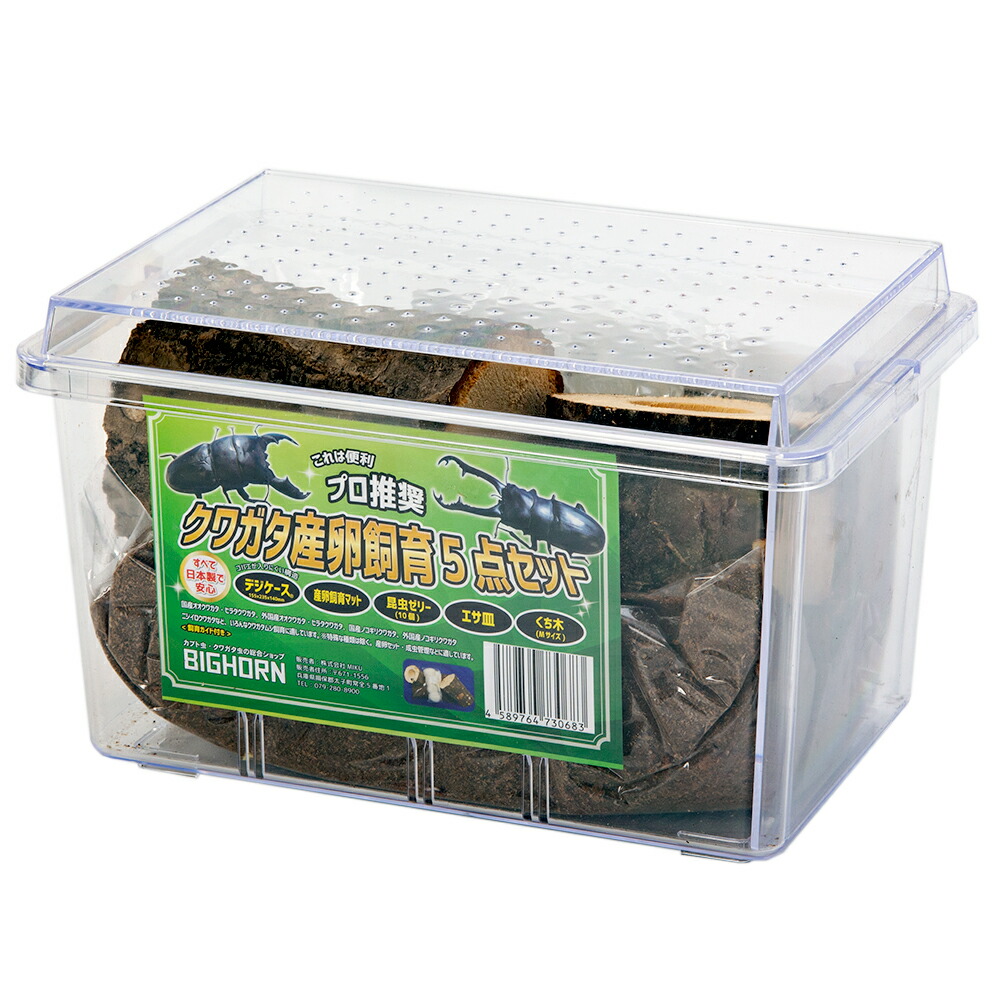 | 特長 | ●クワガタムシの飼育に便利産卵・飼育5点セットです。 ●オオクワ系、ヒラタ系、ノコギリ系、ニジイロ系などの幅広い種の飼育に適しています。 ●産卵セットまたは成虫管理用としてご使用ください。 ●仕切り付きで、♂♀分けて飼育することも可能です。 |
