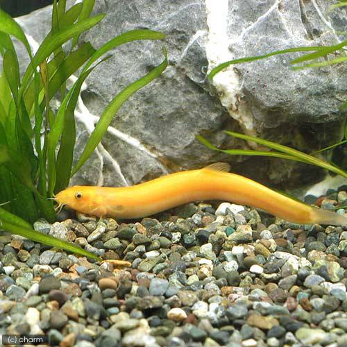 日本全国の平野部の水田や湿地などに生息するマドジョウの黄変個体です。自然界では黄変個体は非常に珍しいものの、ブリードによって作出されたことから流通量も多く、熱帯魚にも負けない派手な外見から人気の種です。鮮やかな色彩から水槽内で隠れていてもすぐに発見でき、愛嬌のある顔から観賞価値が高いです。飼育は容易でエサも雑食性で何でも食べます。驚くと水槽から飛び出すことがあるのでフタを用意するとよいでしょう。水槽内での繁殖は難しいです。