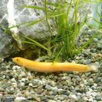日本全国の平野部の水田や湿地などに生息するマドジョウの黄変個体です。自然界では黄変個体は非常に珍しいものの、ブリードによって作出されたことから流通量も多く、熱帯魚にも負けない派手な外見から人気の種です。鮮やかな色彩から水槽内で隠れていてもすぐに発見でき、愛嬌のある顔から観賞価値が高いです。飼育は容易でエサも雑食性で何でも食べます。驚くと水槽から飛び出すことがあるのでフタを用意するとよいでしょう。水槽内での繁殖は難しいです。
