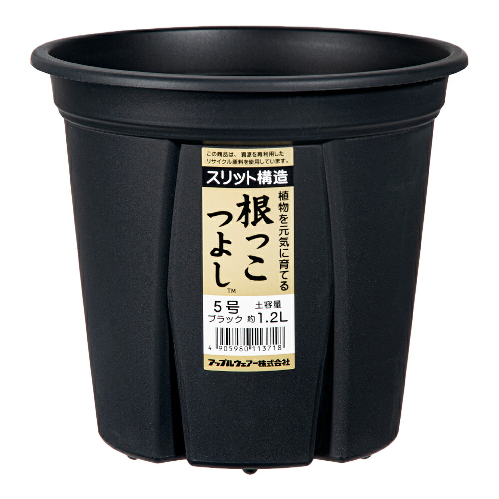 スリット鉢 アップルウェアー 根っこつよし 5号 ブラック 植木鉢 黒