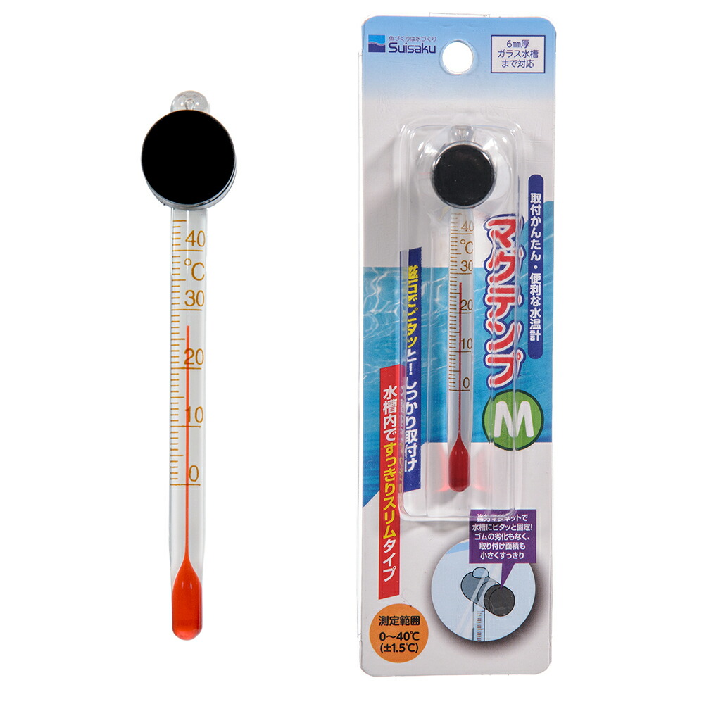 | 特長 | ●観賞魚水槽用の水温計です。 ●従来キスゴムにより取り付けられていた水温計を磁石で取り付けることにより、劣化による外れを防ぐことができます。 ●取付部分も小さいため、水槽に取り付けた際の違和感も大幅に減少しました。 ●スリムタイプなので小さな水槽にも最適です。 |