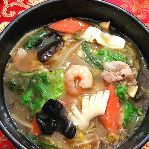 | 原材料 | 白菜、玉葱、人参、竹の子、エビ、イカ、豚肉、キクラゲ、生姜、ニンニク、胡椒、調味料(アミノ酸等)、カキ油、ゴマ油、植物油、小麦粉、澱粉、砂糖、塩、醤油(大豆、小麦を含む) |