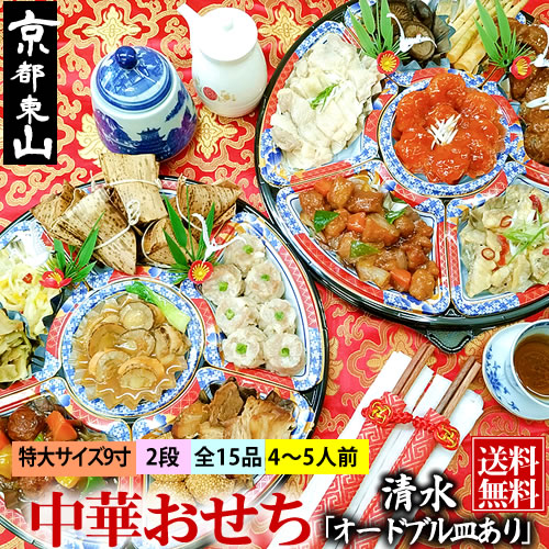 【最短1/8着】中華おせち 清水 オードブル皿あり 2026 中華 おせち料理 送料無料 4〜5人前 二段 2025 中華風 予約 正月 お節 御節 京都