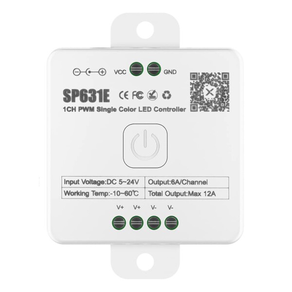 BTF-LIGHTING SP631E 単色 LEDコントローラー Bluetooth PWM コントローラー 調光可能 音楽同期 タイマー 単色 LEDテープライト COB 5630 2835 3014 5050 5730などに適用可能 DC5V-DC24Vをサポート RFリモコンをサポート(リモコンなし)