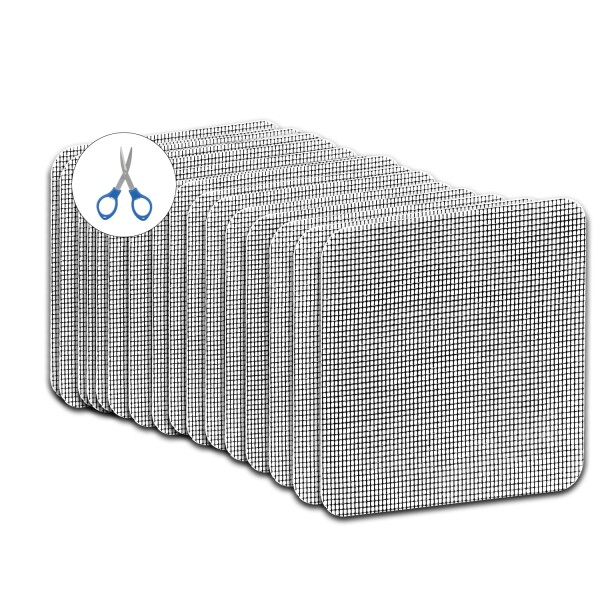 【セット内容】網戸補修テープ×20枚 + ハサミ×1個 、サイズ:約10cm×10cm。色:ブラック