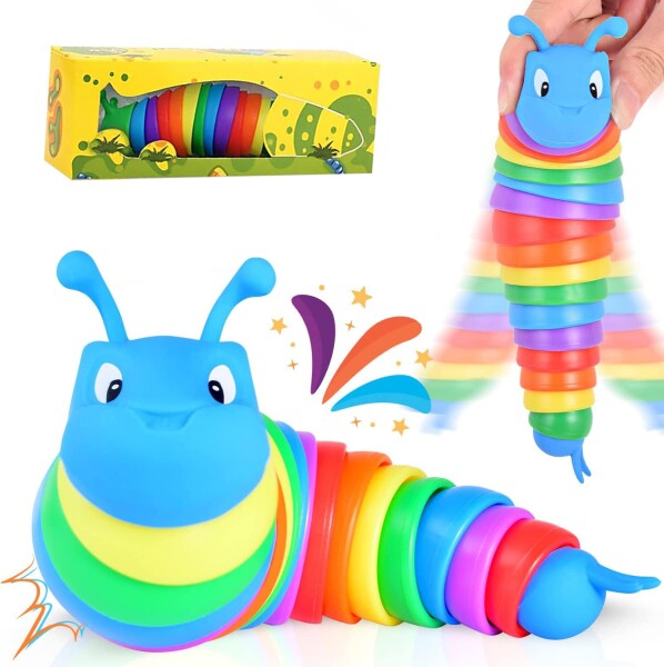 MATSUKUSHI フィジェットナメクジトイ B ストレス解消グッズ 3D立体 関節式 自由解体・合体 知育おもちゃ 減圧おもちゃ 不安軽減 インテリジェンス発展 カラフル 可愛い 毛虫 ガラガラ音が出る 子供大人兼用 (B-B05)