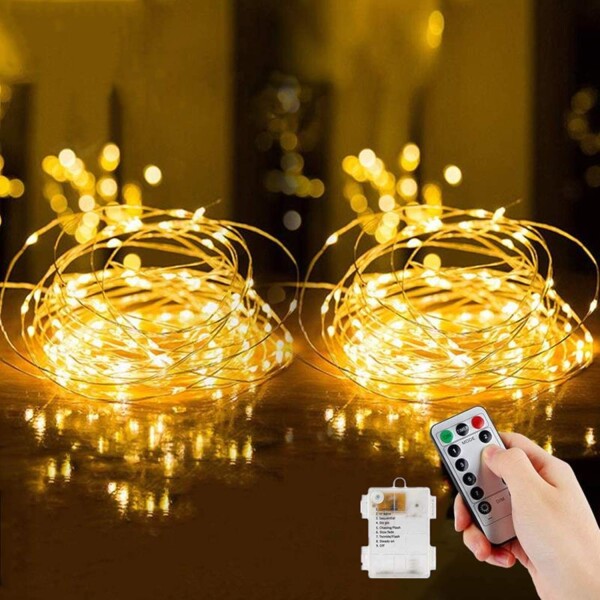 ANJEWLIN LED イルミネーションライトled ストリングスライト 8種光るパターン 電池式 防水 10メートル 電飾 100電球 リモコン付き (ウォームホワイト(2個))
