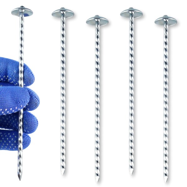 製品特徴:ピンは螺旋設計を採用し、25 mm大頂。寸法:螺旋ピン杭:長さ150 mm×直径4.2 mm、一般的なU型ピンより更に強く頑丈で、各種の極めて硬い土壌を貫通することができて。マテリアル:ピン:防錆亜鉛めっき鋼製、屋外で使用する時錆びにくく。広範な用途:防草シート、農業用防虫ネット、マルチ、ザバーン、不織布、ビニールマルチ、各種シート