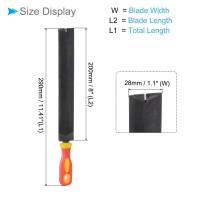 ハンドファイルのサイズ --- 刃のサイズ:200mm x 28mm / 8" x 1.1"(長さ×幅)、全長:290mm / 11.41"、ハンドルの長さ:90mm / 3.5"。精密に削られ、焼き入れられた歯は耐久性があり、良好な切削性能を提供します。