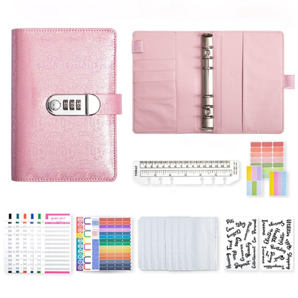 ?内容:【セキュリティロック機能付き】 PU製バインダー・ジッパーポケット×8個・予算シート×12枚・英字ラベル・メモ用ラベル・DIYラベル・定規