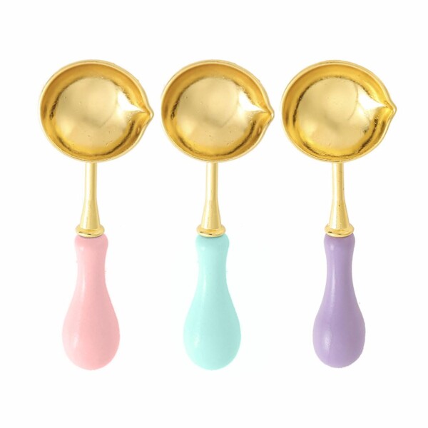 シーリングワックスを溶かすための便利なツール、シーリングスタンプ スプーン 3個セットです。ワックスシールウォーマーに入れて温めるだけで、スプーンに溶けたワックスが溜まります。溶けたワックスをシーリングスタンプに注ぐことで、手軽に封印や装飾が可能です。スプーンは耐熱性に優れ、ワックスの溶解に最適な形状です。シーリングワックス作業の必需品として、書類や手紙、ギフトラッピングなど幅広い用途でご活用いただけます。
