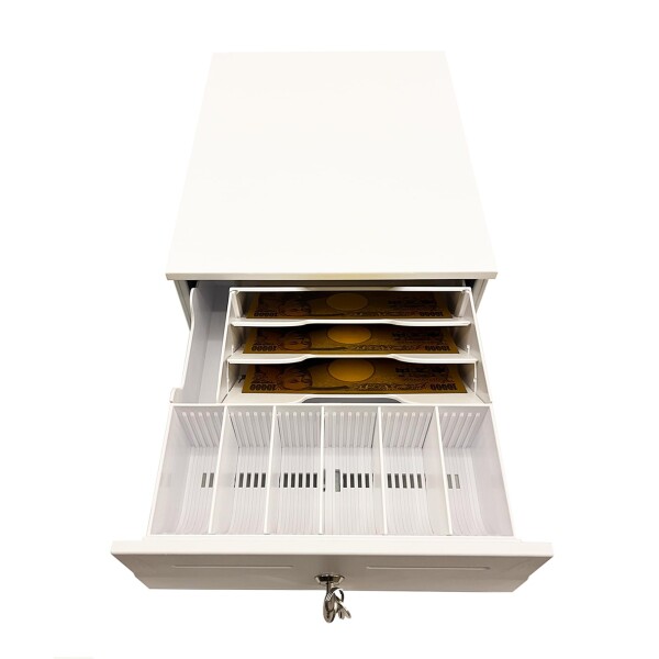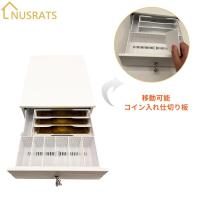 NUSRATS 手動式 キャッシュドロア 小型 紙幣3種・硬貨6種 仕切板取外し可能 キャッシュドロアー ホワイト