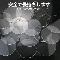 【商品仕様】:数量:丸型アクリル板10枚入り。サイズ:直径約50mm、厚さ2mm。