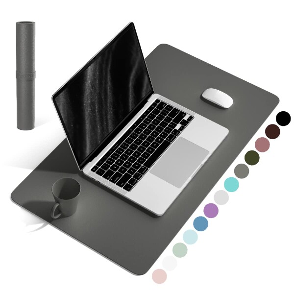 YSAGi デスクマット マウス対応 レザー デスクマット 大型マウスパッド 裏面はスエード 滑り止め 厚さ1.5mm 防水 防油 断熱 お手入れ簡単 オフィス 自宅用 装飾用 デスクパッド(鉛色,60*35cm)