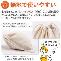 生地は無地。素材はキャンバス(帆布)なので通気性〇。 程よい厚みもあり破れにくく、お洗濯してもよれないしっかりとしたつくりです。 柔らかいコットン素材で小さなお子様でも開け閉めしやすい。 入れ口がしっかり閉まるため、中のものが飛び出しにくい設計です。