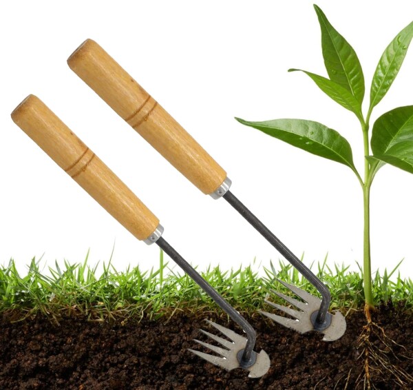 草取り道具 草抜き くわ 芝生 雑草抜き 道具 4つの爪 雑草取り器具 ステンレス製 園芸用 鍬レーキ 小 コンパクト耕作鍬 ガーデン 土起こし器 農機具 草抜き器具 草むしり (2)