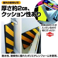 緩衝保護材使用のコーナーガード、コーナークッションです。イエロー×ブラックのトラ柄で、とにかく視認性抜群!壁や柱の位置をしっかり確認できるので、車庫や壁、柱に愛車をぶつけることなく駐車できそう。