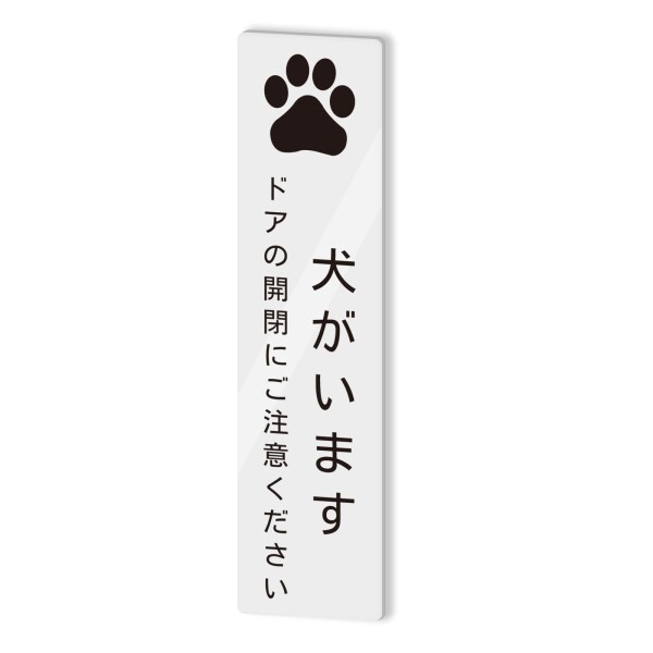 犬がいます タテ型 サインプレート 両面テープ付き ペット 飛び出し 脱走 防止 ステッカー シール 2mmアクリル製 玄関 おしゃれ 2mm厚 15×3.8cm (1枚入り)