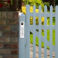 | 商品名 | 犬がいます タテ型 サインプレート 両面テープ付き ペット 飛び出し 脱走 防止 ステッカー シール 2mmアクリル製 玄関 おしゃれ 2mm厚 15×3.8cm (1枚入り) |