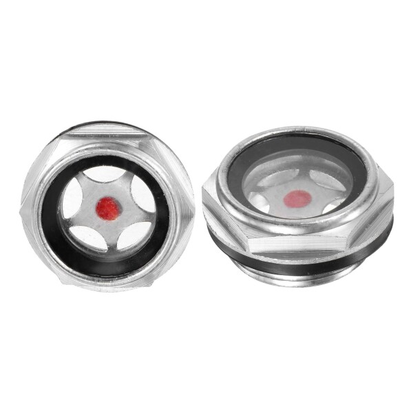 ■パッケージに含まれるもの:2個のオイルレベルサイトグラス 製品の利点 1. アルミニウム合金本体とガラスで作られており、耐摩耗性、破損、錆、腐食、高温に耐え、長期間使用できます。 2. レッドいドット付きのガラスサイトグラスは液体レベルを明確に表示し、オイルの色、透明度、状態を観察し、適時なメンテナンスと補充を容易にします。 注意 最大圧力232 PSI(16バー)および最大温度110[度](230°F)で動作可能であり、アルミニウムオイルサイトグラスはほとんどの運転環境で使用できます。