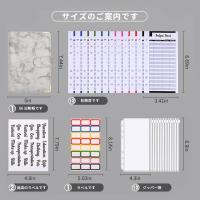 【商品内容】製品サイズ: A6(19×13cm) 仕様:ルーズリーフ ジッパー付きクリアケース:12枚 予算管理シート:12枚 英字ステッカー:2枚 カラーラベルシール:1枚 素材;PUレザー カラー:グレー