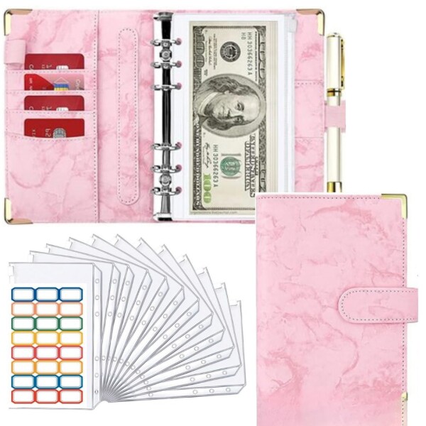 To all gennie 家計簿 ポーチ かわいい 家計管理 予算バインダー セット ファイル 仕分け 予算管理 12個のファイル付き A6サイズ 家計簿節約帳(ピンク)