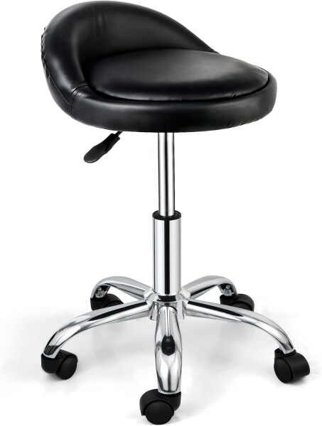 オフィススツール 昇降式 丸椅子 カウンターチェア キャスター付き 低い背もたれ 360度回転椅子 高さ調節可能 PUレザー 製図作業椅子 診察 病院診療 理髪店 美容院 スパ サロン エステスツール (ブラック)