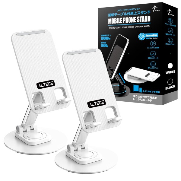 | 商品名 | Altecs 回転式 卓上 スマホスタンド タブレット 多機種対応 カーボンスチール製 軽量 折り畳み (白×2個セット) |